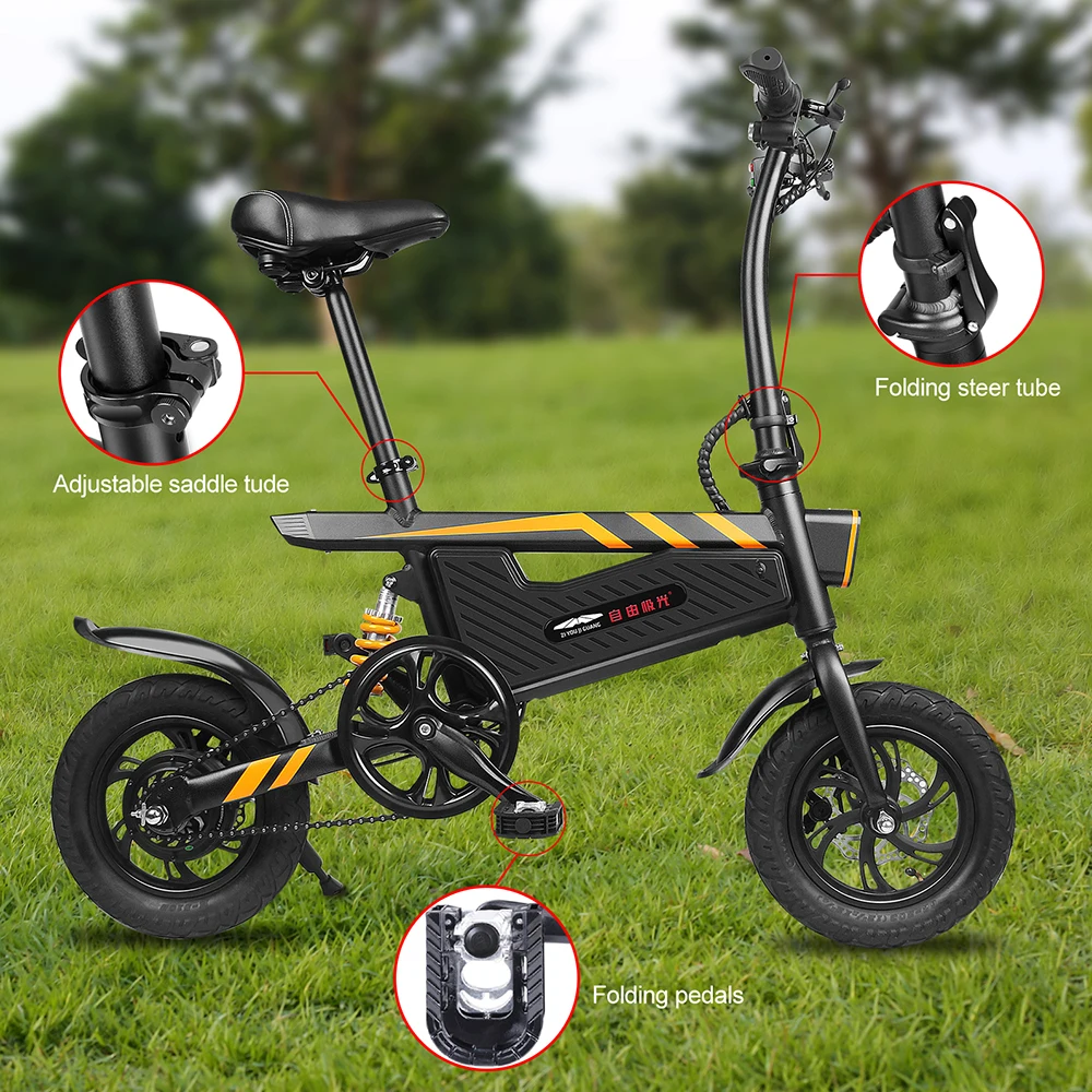 This electric bike is constructed from aluminum alloy, strong enough to support a maximum user weight of 120kg. The bike features 250W powerful motor, 25km/h max speed, 25 - 30km electric range, and 45 - 50km range by power assistance. With adjustable seat height, foldable pedals, and collapsible design, this electric bike is very convenient to use.Features:250W powerful motor offers a fast speed of up to 25km per hour.25 - 30km range in pure electric mode, 45 - 50km range by power assistance.6AH lithium battery takes 3 - 4 hours to full charge.Adjustable seat height suits different riders.Suspension system reduces shock for a comfortable ride.Aluminum alloy construction for extreme durability. Max. load: 120kg.Super bright LED headlight and taillight for added safety at night.Collapsible for easy storage and transport.Ideal for urban, commuting, short trip, shopping and daily use.Note: When the battery is below 30%, the battery indicator light may flash for a while, and the power may be cut off to protect your e-bike and prolong the life span of the battery. For longer range, you can enjoy pedaling and riding the bike by yourself to pursue more fun.Specifications:Material: 6061 aluminum alloyMax. Speed: 25km/hPure Electric Range: 25 - 30kmMan Power Speed: ≥15km/hPower Assistance Range: 45-50kmWheel Size: 12 inchMax. Load: 120kgMotor: 250WController: High standard controllerDriving Method: Shaft driveBattery Capacity: 6AHCharger: US / EU (optional)Charging Time: 3 - 4 hoursClimbing Angle: 20°Rated Voltage: 36VCharger: 42V /2ALow-voltage Protection: 30±1VOvercurrent Protection: 12±1AOver Temperature Protection: 65±5℃Wheel Base: 830mmBrake: Front/rear double disc brakeWater-resistant: IP54Support: Man power/Electric/Multi-driveOverall Dimension: 115 * 53 * 102cm / 45.3 * 20.9 * 40.1inFolded Dimension: 115 * 53 * 73cm / 45.3 * 20.9 * 28.7inWeight: 17.2kg / 37.9lbPackage List:1 * Foldable Electric Bike1 * Charger1 * Wrench1 * User Manual (English)1) We accept Alipay, West Union, TT.All major credit cards are accepted through secure payment processor ESCROW.2) Payment must be made within 3 days of order.3) If you can't checkout immediately after auction close, please wait for a few minutes and retry Payments must be completed within 3 days.1. WORLDWIDE SHIPPING.(Except some countries and APO/FPO)2. Orders processedtimely after thepayment verification.3. We only ship to confirmed order addresses. Your order address MUST MATCH your Shipping address.4. The images shown are not the actual item and are for your reference only.5. SERVICE TRANSIT TIME is provided by the carrier and excludes weekends and holidays. Transit times may vary, particularly during the holiday season.6. If you have not received your shipment within 30 days from payment, please contact us. We will track the shipment and get back to you as soon as possible with a reply. Our goal is customer satisfaction!7. Due to stock status and time differences, we will choose to ship your item from our first available warehouse for fast delivery.8. Delivery Time:1. You have 7 days to contact us and 30 days to return it from the date it was received. If this item is in your possession more than 7 days, it is considered used and WE WILL NOT ISSUE YOU A REFUND OR REPLACEMENT. There are NO EXCEPTIONS! Shipping cost is bear by both seller and buyer in half.2. All returned items MUST BE in the original packaging and you MUST PROVIDE us with the shipping tracking number, specific reason for the return, and your po#.3. We will refund YOUR FULL WINNING BID AMOUNT, upon receipt of the item in its original condition and packaging with all components and accessories included, AFTER BOTH Buyer and Seller cancel the transaction from aliexpress. OR, you may choose to have a replacement.4.We will bear all the shipping cost if the product(s) is (are) not as advertised.1. 12 months Manufacturer`s limitedWarranty for defective items (excluding items damaged and/or misused after receipt). Accessories come with a 3-month warranty.2. Defective items MUST BE reported and returned within the warranty period (and in the original packaging, if possible). You must tell us what the defect is and give us your order number. WE DO NOT REPAIR OR REPLACE ITEMS WITH AN EXPIRED WARRANTY.You agree to all of the above-listed policies upon ordering on aliexpress!We maintain high standards of excellence and strive for 100% customer satisfaction! Feedback is very important We request that you contact us immediately BEFORE you give us neutral or negative feedback, so that we can satisfactorily address your concerns.It is impossible to address issues if we do not know about them!